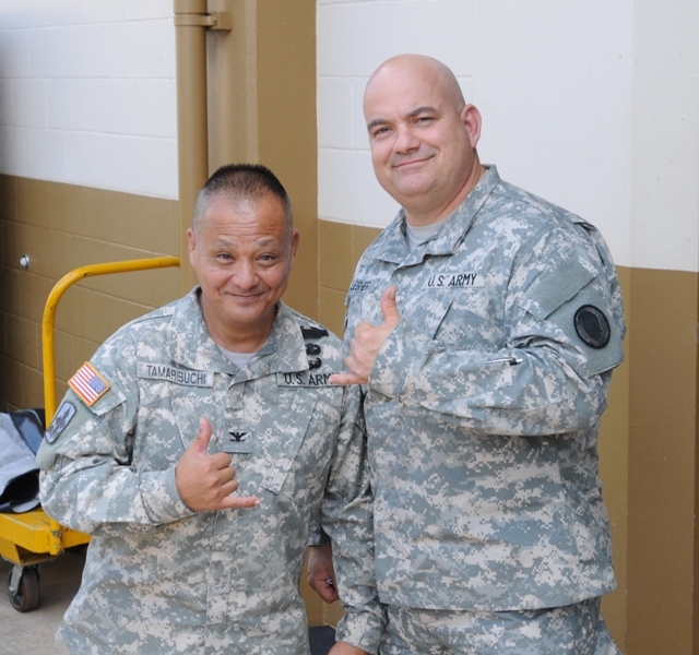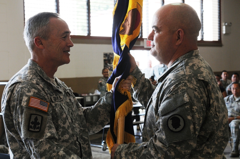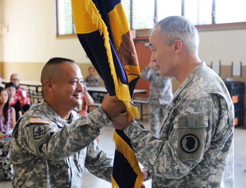 On Saturday, June 7, 2014, Brigadier General Bruce Oliveira, Commander, Hawai‘i Army National Guard, hosted a Change of Command ceremony for the 103rd Troop Command.  During the ceremony, Colonel Paul Tamaribuchi relinquished command to Colonel Robert Lesher.