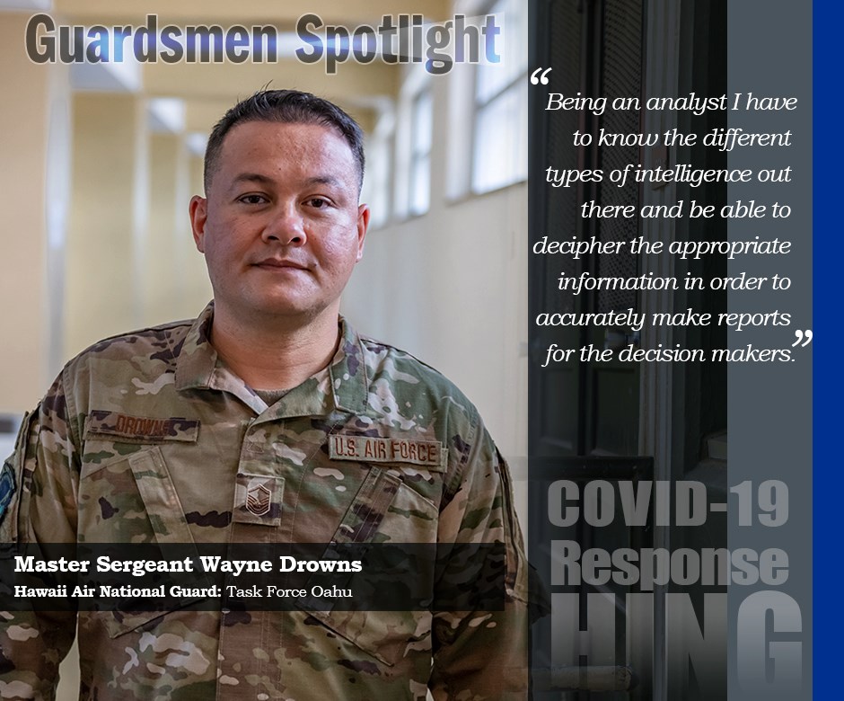 During the Hawaii National Guards response to the COVID-19 pandemic, Drowns has been working on Task Force Oahu.