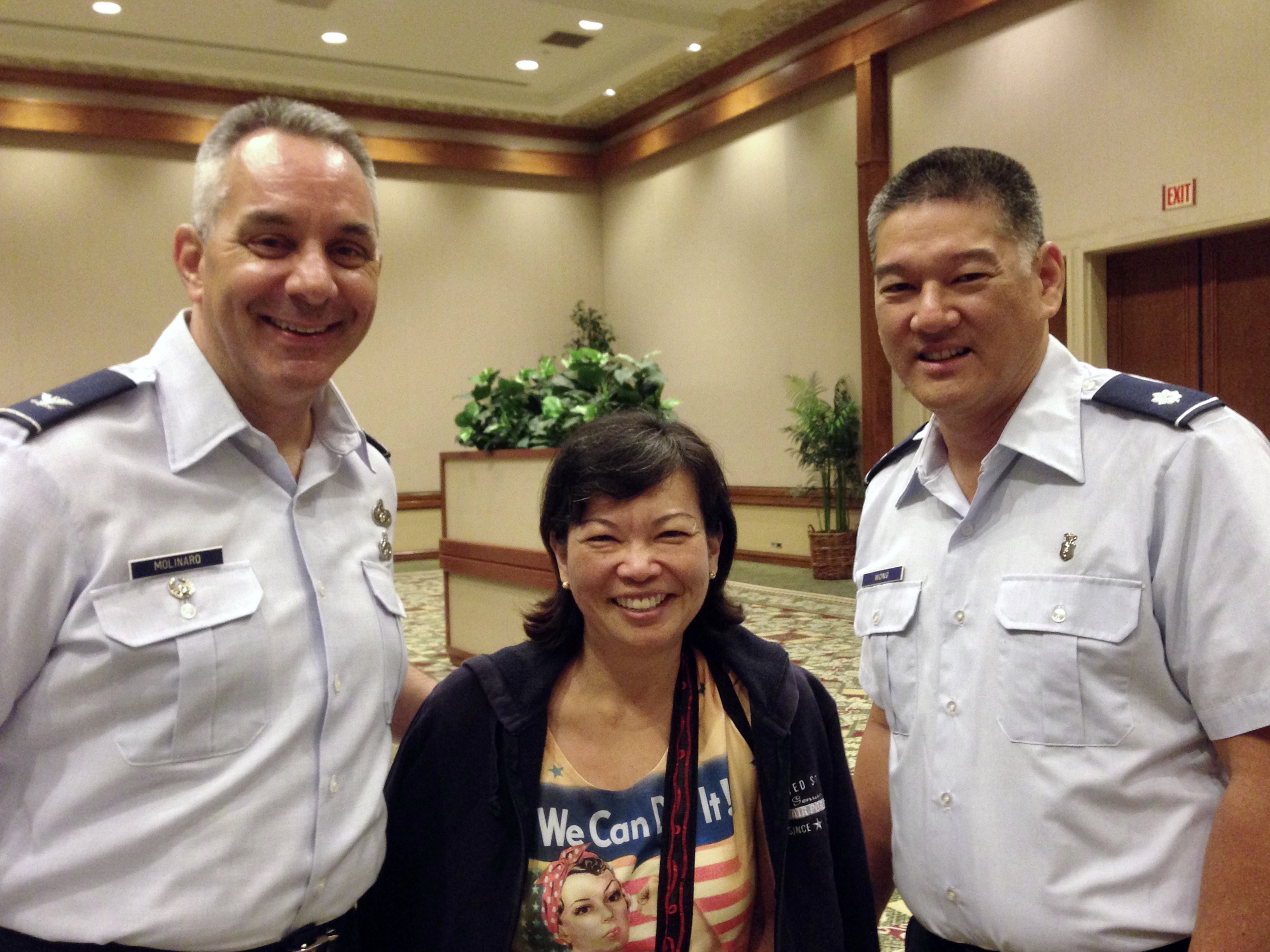 This photograph shows David Molinaro, Tracey Saiki and Erik Wong. Tracey retired from the Hawai‘i Air National Guard and was working for the Chamber of Commerce of Hawaii, managing MAC activities. This was a MAC breakfast at the Hilton Hawaiian Village.