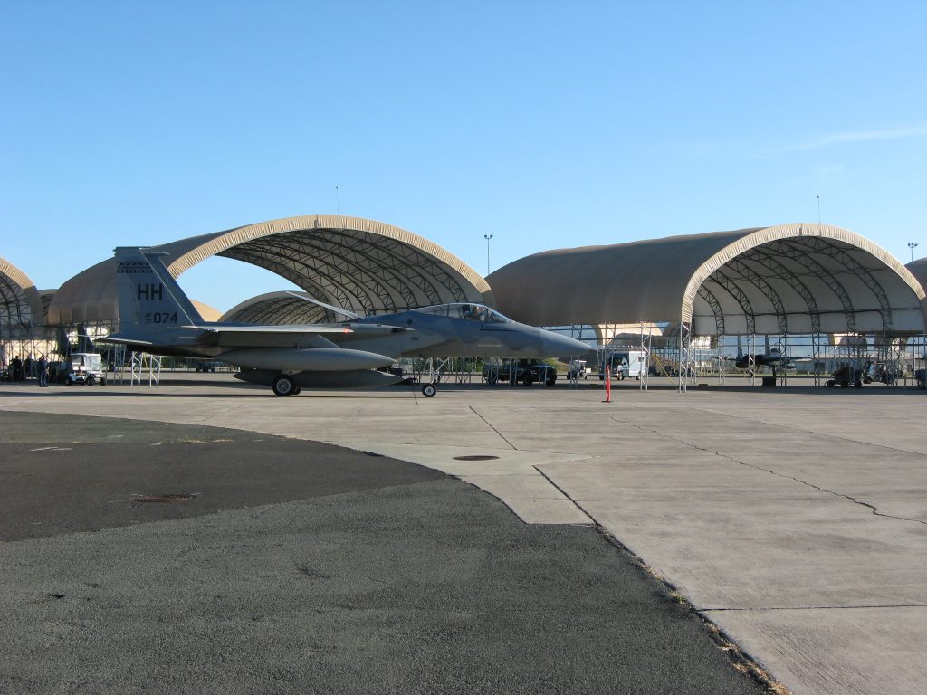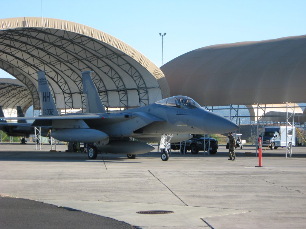 On September 22, 2009, the 154th Wing hosted ceremony to honor the last two McDonnell Douglas F-15 Eagles leaving the Hawai‘i Air National Guard flightline. They were aircraft 77-074 and 76-032. Maj. Kristoff “JAG” Sills and Lt. Col. Mark “Odie” Ladtkow had the honor of flying the HIANG’s last two F-15As to Davis-Monthan Air Force Base in Arizona where they will be retired. The 199th Fighter Squadron had flown F-15 Eagles since 1987.