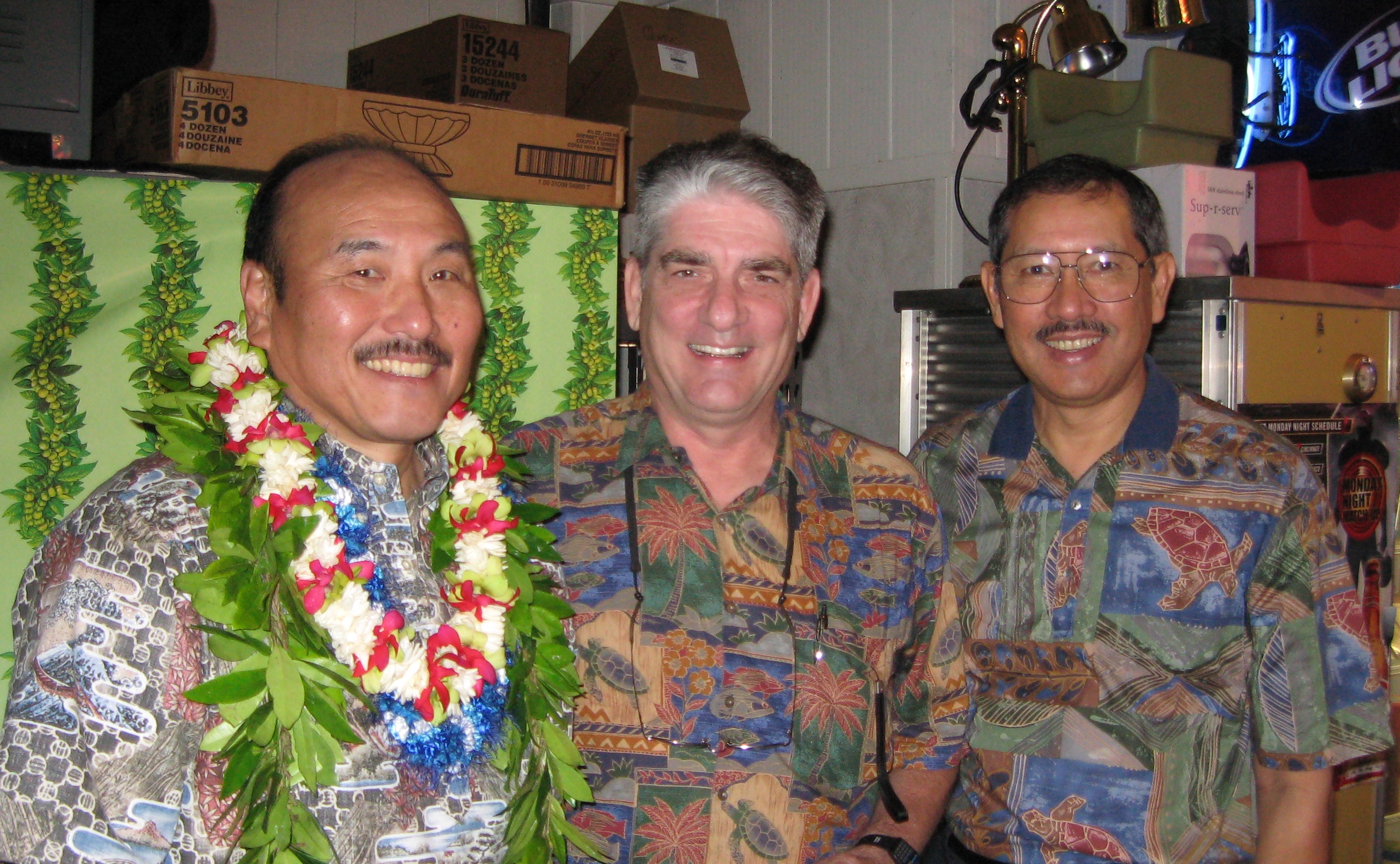 This photograph was taken at his retirement party on December 9, 2007. The party was at the Mililani Golf Course club house. In this photograph is (L-R): Craig Ishizaki, Richard Sullivan, and Moses Akana.